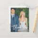 Ge tack vare din familj och dina vänner med det här strålande fotot bröllop tackar du för vykortet med vitt skript. Anpassa vykortet genom att lägga till ett eget foto och information.