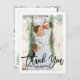 Ge tack vare din familj och dina vänner med det här strålande fototacket kan du visa ett svart skript på vykortet. Detta vykort kommer att vara perfekt för bröllop, studenten och liknande evenemang. Anpassa vykortet genom att lägga till ett eget foto och information.