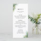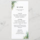 Rustiska vattenfärgsarrangemang handflatan löv, menykort. I mallen finns utrymme för beskrivningar av namn, datum och tre menyrubriker. Det går att anpassa säkerhetskopieringen av färg som visas i koordinering av grönten för sålder.