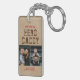 Du är vår Hero pappa Far's Day 2 Photo Collage Keychain. Rustik beige bakgrund och trendig-typografi. Personligens nyckelkedja för ett pappa. Lägg till 2 foton och namnen. Du kan byta pappa till pappa, pap, pappa,.. Perfekt för ett far på en Far dag, födelsedag eller jul och det är en söt keepé.