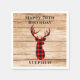 Rustiskt jägartema i 70:e Födelsedagsfesten (oavsett ålder). Hjort silhouette i svart och röd buffel. Rustiskt trä i bakgrunden. Anpassa med födelsedagspungens (eller flickans!) ålder och namn. Perfekt för dem som kärlek utomhus och jakt.