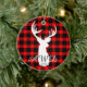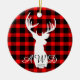 Rustic hjort monterar silhuette på rött och svart lumberjack. Anpassa med initialer och år.