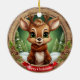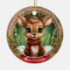 Rustic holiday character xmas reindeer gift for anyone, Ceramic Ornament! Christmas animal, festive wooden winter wildlife deer whimsical cartoon graphic tree hanging. Fun seasonal, unisex personalizable pine wood decor. Framed custom pinecone decoration. Woodland wonderland antlers Customizable white text saying "Merry Christmas" on a vibrant red ribbon – easily customize it with a loved one's name to make it truly personalized. Accents of pine cones and evergreen branches for a cozy look. The background showcases an enchanting snow landscape complete with a snowy trees. This two-sided artwork ensures seeing the adornment from every angle – illustration appears on both front and back, so it always looks complete no matter how it spins. Perfect for customized gifting or decorating, and you can transfer this unique design to a variety of other products! Personalize and bring home this delightful keepsake today! 🦌🎄