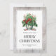 Rustiskt vattenfärgat God jul-kort som innehåller grenar i holly med bär i vas och julgodis. Anpassa enkelt det här rustiska helgdag med din familj namn och året.
