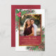 De vackra datumkorten är perfekt för en helgdag eller jultemat bröllop. De har en rustik och festlig design med en marmorerad, skriven röd bakgrund och ditt foto i en faux foil ram omgiven av handmålade sprickor av löv, bär och gräs grenar. Titeln är skriven i lacy script calligraphy med plats för parets namn, datum, plats och webbplats i bröllop.
