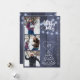 Rustic land stil vinterkort för helgdagar som hälsar på ett marint blått laduvirke med band av twinkle ljus med en kollage av tre foton, ett stort vitt typografiskt skript av typen "Holly Jolly", ett doodle hand plockade Julgran och ett hjärtslitande monogram. ++++++++++ Anpassa den med foton, familjenamogram och namnteckning!