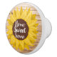Rustic "Home Sweet home" över detaljrik solrosa från hand plockade med träbakgrund.