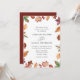 Inbjudan gäster till bröllop med våra vackra, rustiska bröllopsinbjudningar. Under höstens bröllopsinbjudningar finns dina uppgifter om bröllop som är inramade av ett gräns av vattenfärgen höst löv i nyanser av brunt, grönt, burgudy, guld, rost, gult, orange och bränt antal. Bröllopbjudan i höst löv går tillbaka till ett stabilt burgundi färg.