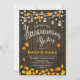 Rustic Houseuppvärmningsinbjudan med mörk brun trä mönster och strängmjölk ljus. Mason Burk och fall höst löv. Perfekt för en rustik stil party. Berätta om du behöver anpassa dig ytterligare.