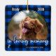 Ät din bästa vän med en rustik blå och svart buffalo-check, ett husminnesmärke, ett julklammer. Den här unika prydnadssakén för husets minnesmärke är den perfekt som du själv, familjen eller vänner får för att betala hyllningen till din kära. Den här prydnadsförebilden för husets minnesmärke har ett skript för elegant på en röd pläterad bakgrund. Citat i ett lysande minne av en underbar hund. " Med två tass avtryck på vardera sidan. Anpassa med favoritfoton för husdjur, hund och namn. Ornament är dubbla, du kan göra 2 favoritfoton, en på vardera sidan. Se "Anpassa den här mallen" för att ändra foto och namn. COPYRIGHT © 2020 Judy Burrows, Black Hund Art - Med alla Höger reserverade. Rustic Hund Memorial Blue Play Pet Loss Keepsaki Ceramic Ornament