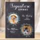 Namnteckning Drinks efter från dina sällskapsdjur! Inkludera din bästa hund, bästa katt och vilket husdjur som helst i bröllop med sin egen namnteckning dryck pub för dina gäster. Perfekt för hundälskare, och ett speciellt hund pub kommer att vara en slå i bröllop. Enkel men elegant vit med eukalyptus löv. Anpassa den här lilla bröllop-tecknet med dina favoritfoton från hund, katt, valp eller kattunge, namn och namnteckning drycker! COPYRIGHT © 2020 Judy Burrows, Black Hund Art - Med alla Höger reserverade. Rustic Hund Namnteckning Drinks Pet Bröllop Cocktail Poster
