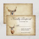 Rustic Hunting Hjort Antlers Bröllop OSA Cards på en vintage med brunt bakgrund med monterat hjort och antlers i hörnet. Dessa är underbara för jakttemat bröllop och alla som lever i kärlek.