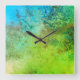 Rustic Industrial Inspired Art Grönt Blue Wall Fyrkantig Klocka