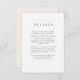 Den här gästinformationen i elegant bröllop innehåller ett vitt kort på framsidan och rosa på baksidan. Du kan använda korten så att de innehåller information om din bröllopsmottagning, köranvisningar, logi och allt annat du behöver för att få veta av dina gäster. Detta kort är avsett att perfekt samordna med vår samling i Rustic Elegance Bröllop.