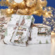 Rustic farmhouse på land, som snokar i bakgrunden papper julomslutning.