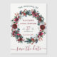 Elegantens moderna skript bröllop snyggt vid julhögtid sparar det magnetkort som innehåller en vattenfärgad krans av rödburgigt peony ro, säsong hunter grönt gräs boughs, fir grenar, röda bär och grönt löv. ++++++++ Lämpligt för elegant chic Vintern jul bröllop.