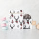 Mysigt och varm Vintage Wilderness Reindeer-jul med vår orustiska vintage stil-handdragna svarta etchade vildmarksrenar i bläck med glasögon, med en mysigt rödbuffel och vinterhalsduk inslagen runt renens nacke. Modern Play Julgranar kompletterar på ett vackert sätt renillustrationen. Alla teckningar som ingår i denna Mysiga Vintage och varm jägerhet Reindeer-julomslutning är handritade originalteckningar av Moodthology.
