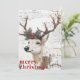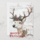 Det här julkortet är ett rejält exempel på en hjort som är försedd med en gräs och en röd bäddkrans på sina tändare. Bakgrunden har en vintage som textureras stil med handskript, och "God jul" markeras med fet röd text. Det är perfekt att lägga till en varm, mysigt helgdag till säsong hälsning.