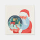 Rustic stil Santa håller en jordglob med en stad, frusen sjö och skater.