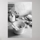 Rustic Kitchen Baking Scene Black and White Photo Poster