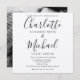 Med eleganten namnteckning du stil namn tillsammans med ditt foto, kan den här snyggtens minimalistiska roliga bröllopsinbjudan vara personlig med dina bröllop-detaljer i chicens svarta skrift. Designad av Thisisnotme©