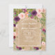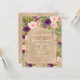 Vacker plommonlila och rosa, botaniskt boho-stil vattenfärgad blommigt på papper bröllopsinbjudan för brunkol.