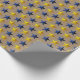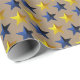 En papper skorstenskraftförpackning för juldagen med ljusblå marinblå helgdag och guld-stjärnor i ett upprepat mönster på en varm kraftverkspapper.