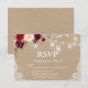 Kraft Rustic Bröllop String Ljus Mason Burk Snöre Watercolor Burgundy Marsala Blommigt OSA kort