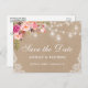 Rustic Kraft Burk Ljus Rosa Blommigt Spara datum Meddelande Vykort