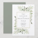 Den här chicens botaniska bröllopsinbjudan kan vara personlig med din speciella bröllopsdag-information. Den innehåller delikat vattenfärgsgrönt löv på ett rostfritt kraftkort. Designad av Thisisnotme©