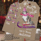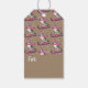 En julklapp märkre med en helgdag bakgrund med en vattenfärgad Bergskaberg hund klädd i rosa tuque och scarf på en lila och rosa som är slät med snöflingor och säger, Merry & Bright, med ditt namn längs grund.