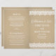 Bröllop lakan-programmen har "Firande i Kärlek" i skript, en charmerande illustration av gräns vit blommigt och prickad snöre, och en bakgrund med ett strålande vintage, brunfärgat, texturerat utseende. Anpassa anpassningsbarna till brudens sida, ceremoniinformation och tack för ditt budskap. Obs! Dessa pappra textviktsprogram anländer jämnt och kräver vikning för att samlas ihop.