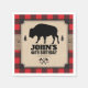 En bakgrund med rödbuffel är kontrastfull mot en papper solpanel på den här Northwood-teman. Panelen innehåller texten och har en bison (buffel) mellan två gräs träd. Den korsade yxan gör en logotyp i anpassningsbarna nedan. Underbart tillägg till en födelsedag, en bachelor-fest, en säsong-händelse eller en buffelplaid, eller ett lumberjack-temat firande. Tillgängligt med matchande produkter.