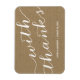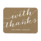 Avslappnad-chic-bröllopsförmånen innehåller texten "Med tack" i ett visemiskt kalligrafiskt skript mot en papper-stil-bakgrund.