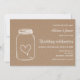Bröllopsbjudan med papper bakgrund för brunkol med chic Mason burk och hjärtillustration tittar vacker och unik.