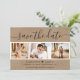 Fotot från elegant Rustic Kraft papper bröllop sparar datumkortet med ett modernt typsnitt och en fotokollage på en papper verklighetssida. Anpassa detta kort enkelt med information om bilder och bröllop, inklusive en webbplats för bröllop om tillämpligt.
