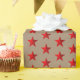 En papper skorstenskraftförpackning för julen med röda stjärnor i mönster på en varm kraftverkspapper.