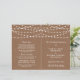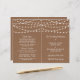 Strängen ljus på Rustic Kraft bröllop-samlingen är en fantastisk elegant som har en underbar vit hängsträng ljus på en Kraft-effektbakgrund, som är perfekt för alla rustiska bröllop firande. Dessa program kan vara personlig för ditt särskilda tillfälle och skulle göra perfekten till serviceorder för bröllop, möhippa, förlovningsfest, födelsedagsfest och många fler särskilda tillfällen. Lägg till anpassningsbarnas ordalydelse i den här designen genom att använda rutorna "Redigera den här designmallen" på objektets höger eller klicka på den blå "Anpassa den" om du vill ordna texten, ändra typsnitt och färg och även lägga till ytterligare information om bilder i den här designen. VISA MATCHNINGSOBJEKT FÖR DENNA SAMLING