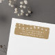Rustiska returetiketter av elegant har en kraftbakgrund med vita bokstäver och strängar av glödande vitt ljus.