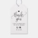 Rustic Calligraphy/Typography Favor Tag (svart): Den här märkrn för bröllopsförmån innehåller ord "Tack" i en underbar roterande kalligrafi högst upp. Skriv bara in namn, bröllop-datum, och tack för ert budskap! Utformningen är svart, men du kan ändra den till valfri färg genom att bara ändra bakgrunden till färg!