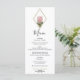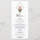 Den här designen har en rosa rustic Kung Protea-blomma. Kung Proteblomman med grönt löv är elegant inramad med guld diamant färg ram. Kung Proteblomman och dess gröna blomma skapar en rustik blommigt land trädgårdskårlöpning. Rustic bröllop-menykortsdesign med elegant modernt inslag. Det finns också möjlighet att matcha bröllopsinbjudningar och andra artiklar i kontorsartiklar.