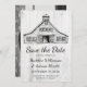 Rustic Black and White Land Barn Save the Date - En charmig, rustik lada visas på vår Spara datum. Bakgrunden är ett rostfritt vitt trä. Du kan enkelt göra vår Spara datumet Baksidan av den här charmen Spara datumet-funktionen till ett vackert foto. Unik med vår design verktyg. Om du vill anpassa Spara datumet ytterligare markerar du länken "anpassa ytterligare". Om du behöver hjälp med att anpassa "Spara datumet", tveka inte att nå ut. Spara datumet kommer att ingå i en samling. Designad av Beverly Arena-Bainbridge Bröllop Designer The Icing on the Cake https://www.facebook.com/theicingonthecakeshop e: icingonthecakeshop@icloud.com