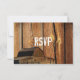 Ett svarskort för landsbyggsbröllop med en gammal lada i hörnet och en bakgrund av nödlidande lada i mörk. Fullständigt anpassade med dina egna uppgifter. Baksidan av inbjudan har "OSA" i skript. Här är matchande inbjudan från personligt bröllp: