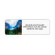 Adressetiketter med ett vackert foto av en trevlig och lugn naturscen. Vibrant grönt i fram- och skuggblåa berg i baksidan. Med en grumlig vit himlar. Misty och magisk känsla.
