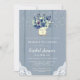 Rustic Land Blue Mason Burk Wood Möhippa I - En underbar land mason burk fylld med vattenfärgade blommor är sitta på en dammig blå träbakgrund, försedd med land snöre och vitt skinkligt ljus. Mason burk är graverat med bruden och brudgummen initialer. Perfekten inbjudningskort för möhippan för den brud som kärlek är ett ryskt tema. Inbjudan ingår i en samling.