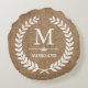Rustic Land Burlap Chic Laurel Wand Monogram Rund Kudde