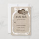 Rustiskt landsbyggsbröllop OSA kort som har en burk med två brännhjärtan med initialer på en brännvinsbakgrund. Anpassa enkelt den här romantiska onlinen för OSA. Matchande artiklar som är tillgängliga för att komplettera det här rustiska bröllopet OSA-kortet.