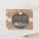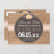 Rustic Land Burlap Snöre Boho Ro och tryckt band Spara postkort för datum. Det här landsbyggsbröllopet sparar datumvykorten och har en utskriven överlappningsdesign. Det finns plats på baksidan för din returadress och ett tomt utrymme för dig till adress för vykorten till dina gäster. Dessa är underbara för landsbyggsbröllopen.