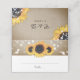 Anpassningsbar rustiskt solroskort bröllop. Utformning av perfekter som komplement till land, trädgård, trädgård eller ladugård som inspirerats av solrosblommor. Matchande artiklar som är tillgängliga för att komplettera dessa rustiska chic bröllop-platskort.