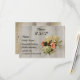 Det här vackra R.S.V.P.-kortet är bara lite rustiskt, det matchar bröllopsinbjudan i min "Vintage Hydrangea and Coral Rosa Carnation"-samling. Den har en muterad bakgrund av vitewaserat och barrved. En söt vintage-blommigt buquet har vita vattenmagasin och korallkolvar av färgad med mjuk vattenfärg. Du kan redigera all text, framsida och baksida.